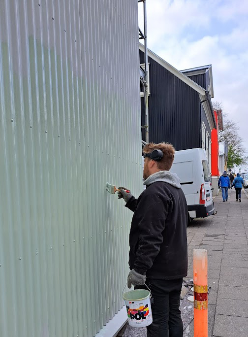 - Ef ryðblettir eru til staðar eru þeir hreinsaðir upp með vírbursta og grunnaðir áður en málun hefst.