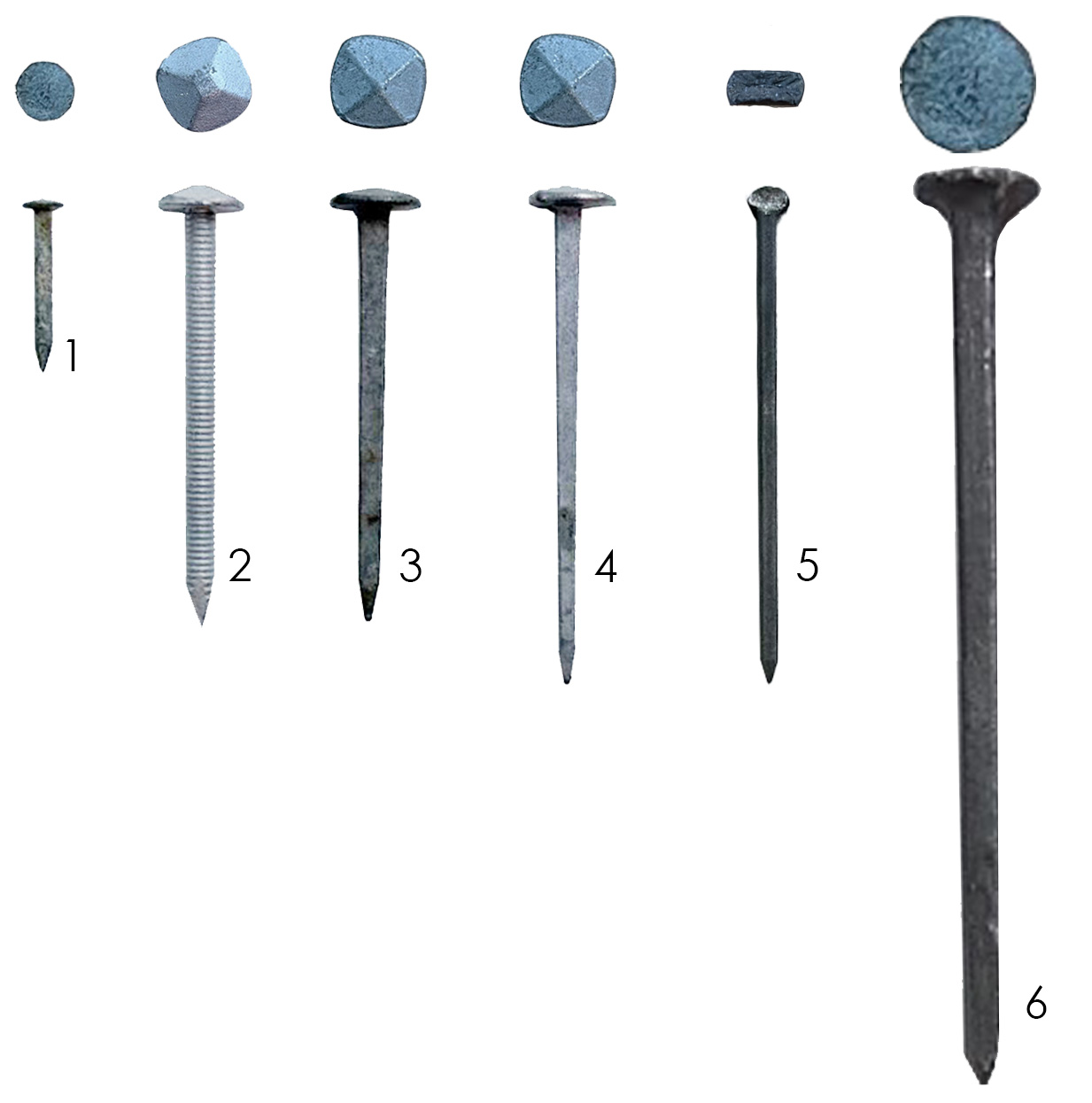 - Hefðbundin nagli með hömruðum haus sem er búið að hausa (fletja).