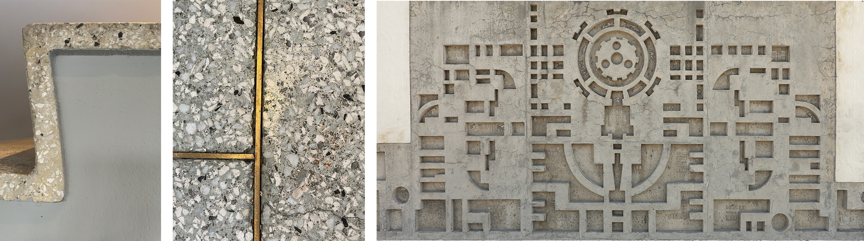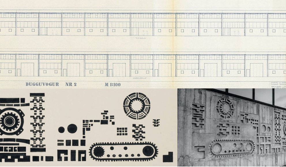 Lágmyndirnar voru fyrst skornar út í frauðplast og þær síðan festar á krossvið sem komið var fyrir í mótum áður en húsið var steypt. Myndirnar sýna ýmis form sem vísa í bílavarahluti, undirvagna og annað sem minnir á starfsemina sem upphaflega var í húsinu.