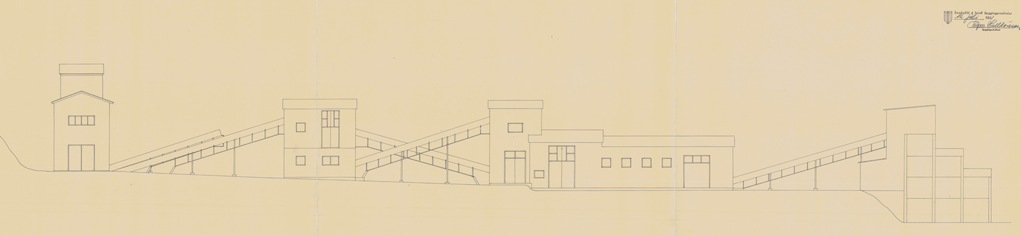 Húsin voru byggð árið 1961 eftir teikningum Rögnvaldar Þorsteinssonar bæjarverkfræðings og samanstóðu af fjórum byggingum, sem stóðu í röð frá vestri til austurs og tengdust með færiböndum.